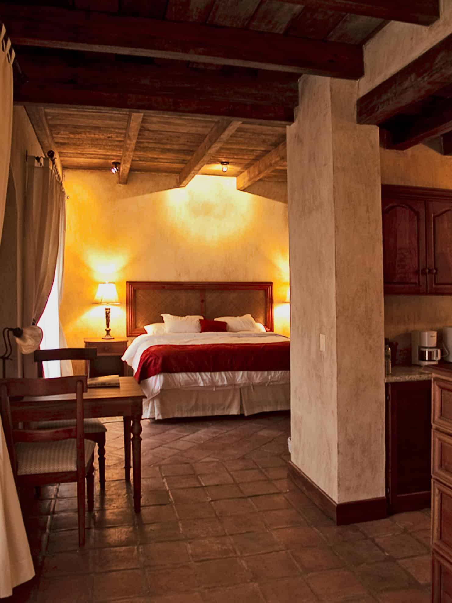 This Premium accommodation has one king-size bed, a jacuzzi, colonial architecture, quality furniture, and more. It can be found on the hotel’s second floor, facing the pool and boasting spectacular views of the mountains.