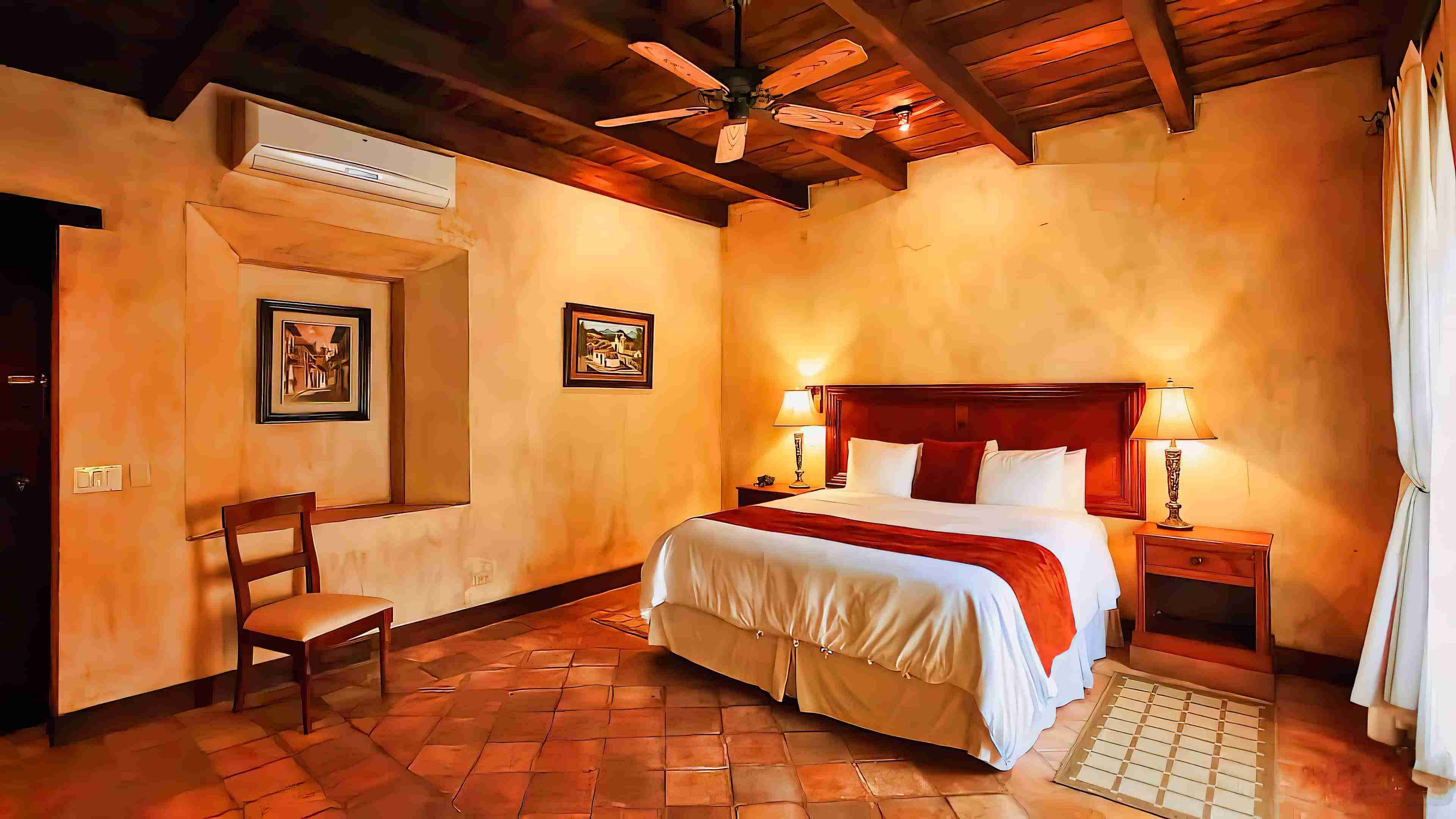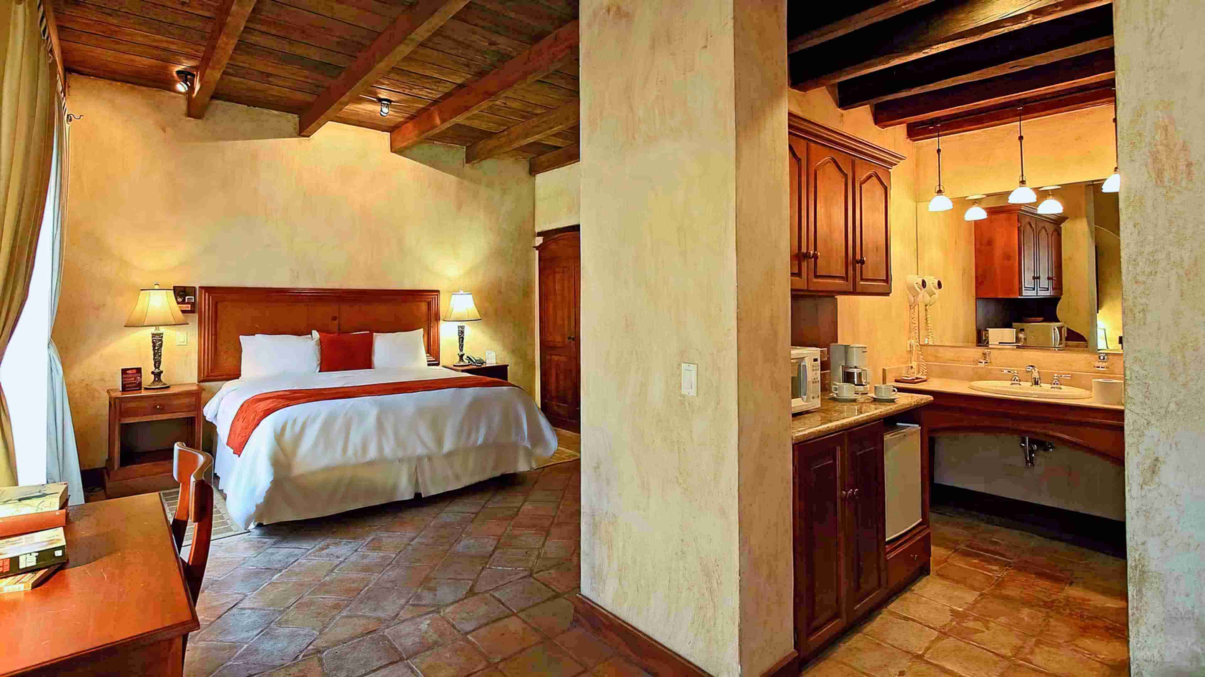In the hotel’s restored original wing, which features exposed wooden beams and extra-wide mud-brick walls, there are seven lavishly appointed Single Premium Rooms, each with a king-sized bed.
